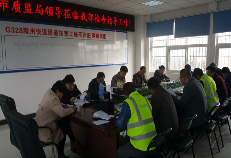 3月1日,滁州市質(zhì)監(jiān)局局長(zhǎng)張業(yè)軒在建設(shè)單位南譙區(qū)交通局副局長(zhǎng)胡明桂的陪同下,蒞臨G328滁寧快速通道拓寬工程項(xiàng)目部檢查指導(dǎo)工作。