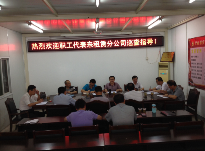 7月18日,公司紀(jì)委書記、工會(huì)主席干戈率職工代表巡視組到租賃分公司檢查工作,圍繞公司2017年重點(diǎn)工作、總經(jīng)理報(bào)告、黨委書記講話、公司制度及職工代表提案落實(shí)情況進(jìn)行巡查并召開座談會(huì)。公司工會(huì)副主席殷陽明、技術(shù)中心副主任程正旺、黨委工作部副主任許志興隨同,租賃分公司班子成員及部門負(fù)責(zé)人參加座談。