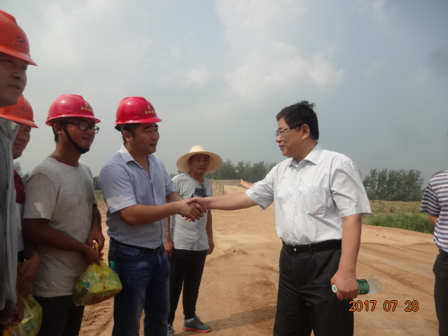 陳長(zhǎng)春與全體建設(shè)者親切握手并送上了防暑降溫用品,在聽(tīng)取了項(xiàng)目負(fù)責(zé)人關(guān)于近期工作進(jìn)展情況及防暑降溫措施的匯報(bào)后,要求項(xiàng)目部合理安排施工時(shí)間,避免高溫時(shí)間段現(xiàn)場(chǎng)作業(yè),切實(shí)做好防暑降溫工作,保證工程進(jìn)度與質(zhì)量,確保年底通車(chē)既定目標(biāo)的順利實(shí)現(xiàn)。