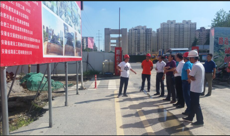 8月23日下午,合肥市重點(diǎn)局特約監(jiān)督員李保、市城市管理局副局長裴學(xué)文、市重點(diǎn)局副局長杜亞斌一行赴安徽路港銅陵路高架項目部督察。