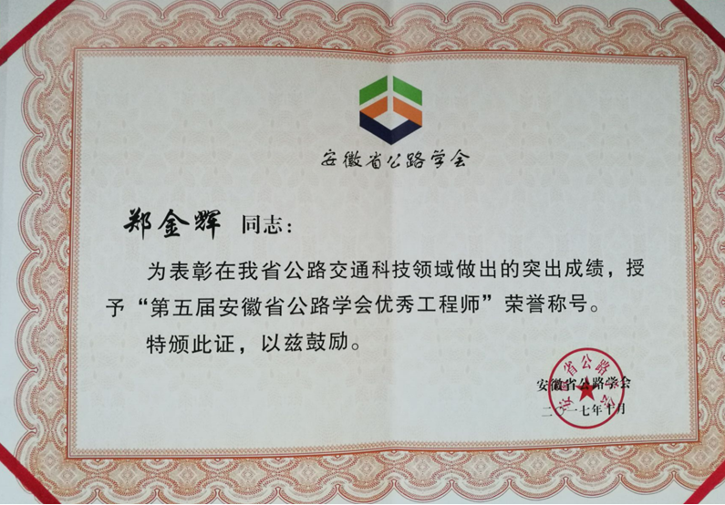 “安徽省公路學會優(yōu)秀工程師”是我省公路交通行業(yè)科技領(lǐng)域的學術(shù)和技術(shù)帶頭人,是全省公路交通行業(yè)優(yōu)秀工程技術(shù)人員的代表。
