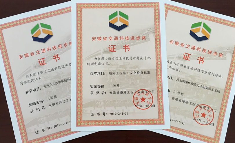 以上獎項的獲得是安徽路港公司發(fā)展的信心和動力, 我們將珍惜榮譽,發(fā)揚成績,再接再厲,為安徽公路交通事業(yè)做出更大貢獻。