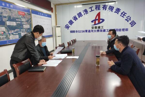 作為開辟銅陵市場的重點(diǎn)項目,當(dāng)?shù)卣凸緦椖康囊咔榉揽睾蛷?fù)工復(fù)產(chǎn)工作十分重視。銅陵市常務(wù)副市長程雙林,銅陵市綜合交通投資集團(tuán)有限公司董事長何成龍、副總湯世才及業(yè)主等領(lǐng)導(dǎo)贈送了口罩和酒精等防護(hù)用品,并鼓勵大家直面疫情,做好防護(hù),安全復(fù)工。公司工管中心副主任郭明奎和一分公司領(lǐng)導(dǎo)班子在復(fù)工前對項目防疫和復(fù)工復(fù)產(chǎn)工作進(jìn)行了督查,并就不足之處提出整改意見。