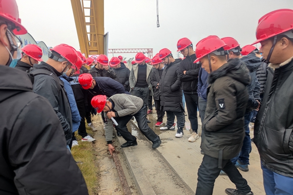 培訓(xùn)以室內(nèi)培訓(xùn)和現(xiàn)場講解相結(jié)合的方式進(jìn)行。1日上午,參培人員在酒店會議室學(xué)習(xí)了特種設(shè)備基礎(chǔ)知識、檔案管理、設(shè)備報檢、安拆方案編制注意事項(xiàng)等,同時對特種設(shè)備安全法和國家新頒布的相關(guān)政策法規(guī)進(jìn)行深入學(xué)習(xí)。下午,參培人員赴合樅預(yù)制標(biāo)參觀輕型T梁生產(chǎn)線,并在圓管涵預(yù)制區(qū)接受現(xiàn)場授課,學(xué)習(xí)起重設(shè)備安全裝置及操作注意事項(xiàng)。袁民作總結(jié)講話,他指出,隨著公司產(chǎn)值提高,特種設(shè)備數(shù)量也逐漸增多,為保障安全施工,對安全管理人員的特種設(shè)備安全知識培訓(xùn)勢在必行。