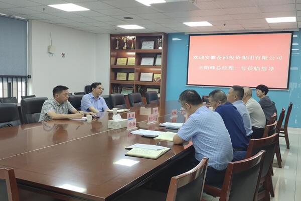 6月9日下午,安徽皖岳投資集團有限公司王貽峰總經理一行前來我公司調研考察,并與錢葉琳總經理舉行會談,公司相關職能部門參加會談。