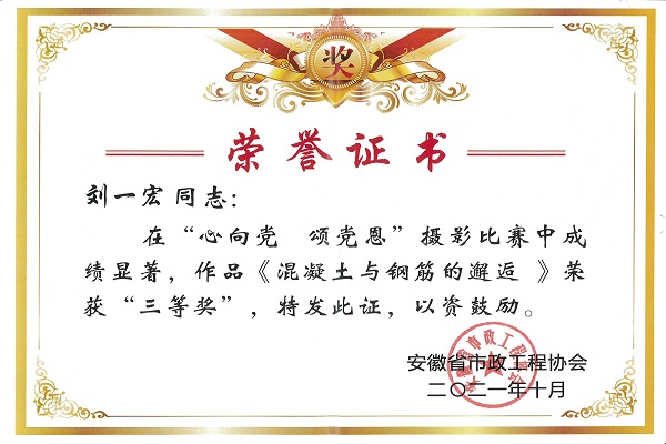 公司團(tuán)委攝影社團(tuán)選送作品榮獲安徽省市政工程協(xié)會(huì)攝影比賽三等獎(jiǎng)