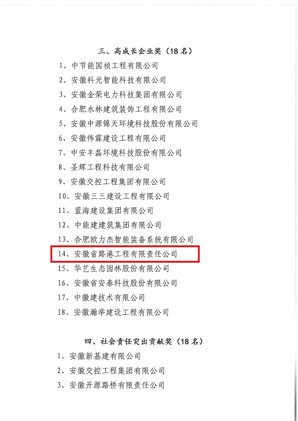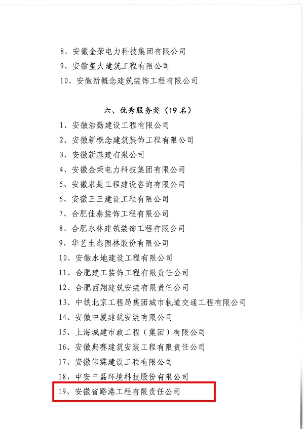 近日,合肥高新技術產業(yè)開發(fā)區(qū)建設發(fā)展局發(fā)布了《關于表彰合肥高新區(qū)優(yōu)秀建筑業(yè)企業(yè)的通報》結果,我公司榮獲“高成長企業(yè)獎”、“社會責任突出貢獻獎”、“優(yōu)秀服務獎”三項榮譽獎項。