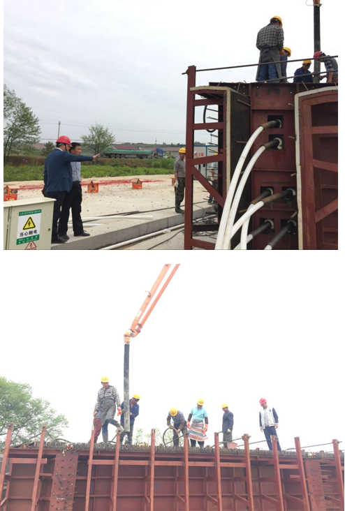 首片T梁系屬南河大橋邊跨中梁0-2#,跨徑40m,高2.5m,寬1.7m,砼總計方量63m³。第一片T梁順利澆筑拉開了橋梁施工的新帷幕,標志著本項目開始進入橋梁上部結(jié)構(gòu)施工階段。