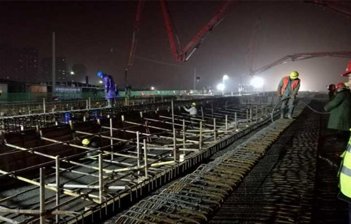 此次現(xiàn)澆內(nèi)容為主線橋第二十四聯(lián)現(xiàn)澆箱梁底腹板,澆筑混凝土1700方,用時(shí)20小時(shí)。為確?,F(xiàn)澆箱梁首次砼澆筑各工序的順利進(jìn)行,項(xiàng)目部于21日召開現(xiàn)澆施工現(xiàn)場交底會(huì),明確分工,責(zé)任到人,制定了詳細(xì)預(yù)案,針對(duì)現(xiàn)澆施工可能出現(xiàn)的問題制定了相應(yīng)的解決措施。