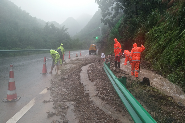 7月18日,由于連續(xù)陰雨天氣,六潛小修養(yǎng)護(hù)01標(biāo)發(fā)生山洪,造成高速路段多處邊坡表土剝離、邊坡塌方、邊溝積水漫至主道路。面對突發(fā)險情,項目部迅速組織,積極響應(yīng),火速組建了一支20余人的應(yīng)急搶險隊伍,對塌方現(xiàn)場進(jìn)行及時清理。在歷經(jīng)8個多小時的奮戰(zhàn)后,所轄路段所有障礙物全部清理完畢,迅速恢復(fù)交通,為過往車輛、司乘人員的生命財產(chǎn)提供了有力保障。
