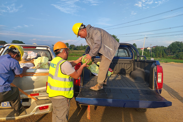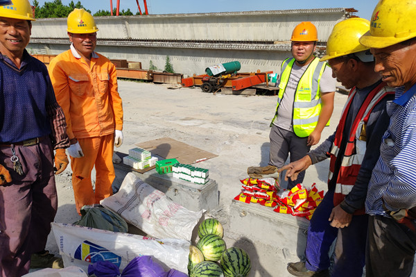 項目部結(jié)合施工人員實際需要,切實為職工辦實事,以實際行動踐行“我為群眾辦實事”活動,將藿香正氣水、十滴水、風油精、綠豆、白砂糖及西瓜等防暑物資發(fā)放到一線工人手中,并告知施工人員高溫季節(jié)施工作業(yè)注意事項,叮囑大家注意勞逸結(jié)合,預(yù)防高溫中暑。一線施工人員感受到項目部的關(guān)懷,紛紛表示會以更飽滿的熱情投身施工生產(chǎn),保質(zhì)保量完成各項任務(wù)。