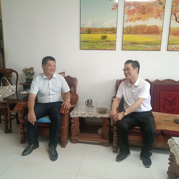 張鵬飛與老黨員促膝而談,仔細(xì)詢問他的家庭情況、身體和生活狀況,表達(dá)公司、分公司的殷切關(guān)懷和慰問,并送上節(jié)日祝福。