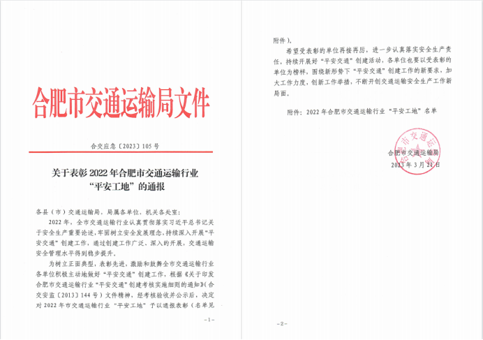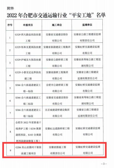 近日,在合肥市交通運(yùn)輸局開展的建設(shè)系統(tǒng)第一批“平安交通”創(chuàng)建工作中,市政分公司承建的G206公路吳山至滁河干渠段改建工程項(xiàng)目榜上有名。