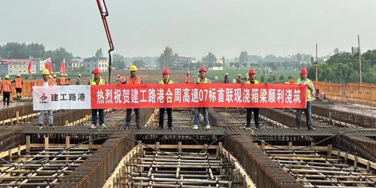 7月26日上午六時(shí)十八分,合周高速潁臨段路基07標(biāo)首聯(lián)現(xiàn)澆箱梁在兩臺(tái)泵車隆隆的作業(yè)聲中順利開始澆筑,較計(jì)劃工期提前了一周。