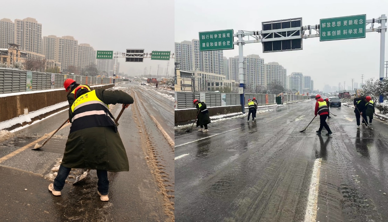 12月18日,全市迎來降雪天氣,金寨南路2標(biāo)項目以雪為令,全面迅速開展掃雪除冰工作。