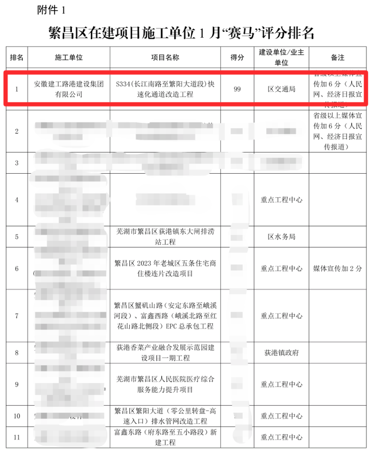 2月7日,蕪湖市繁昌區(qū)人民城市建設(shè)委員會(huì)發(fā)布《關(guān)于2024年1月在建項(xiàng)目施工單位“賽馬”結(jié)果的通報(bào)》,由建工路港承建的s334項(xiàng)目以最高分99分奪得最高獎(jiǎng)項(xiàng)“天馬獎(jiǎng)”,這也是業(yè)主自10月開展“賽馬”評(píng)比活動(dòng)以來,連續(xù)4次蟬聯(lián)該獎(jiǎng)項(xiàng)。